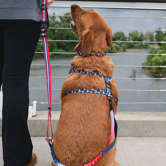 Deluxe Adjustable No Pull Leash- Red, White and Blue